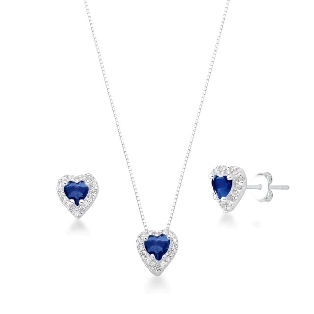 Além dessa sensação tão gostosa, o conjunto entrega harmonia visual: o azul profundo da pedra, facetado como um pequeno cristal-safira, conversa com o brilho das zircônias e com a suavidade da prata 925, formando uma composição moderna, romântica e naturalmente elegante. A corrente veneziana dá movimento sem pesar, enquanto o design neotênico dos corações reforça a estética lúdica e sofisticada que marca nosso mundo doce. O colar e os brincos foram pensados para combinar entre si de forma fluida, criando um look coeso, marcante e superversátil — perfeito para quem valoriza leveza, expressão criativa e aquele charme discreto que nunca sai de moda.